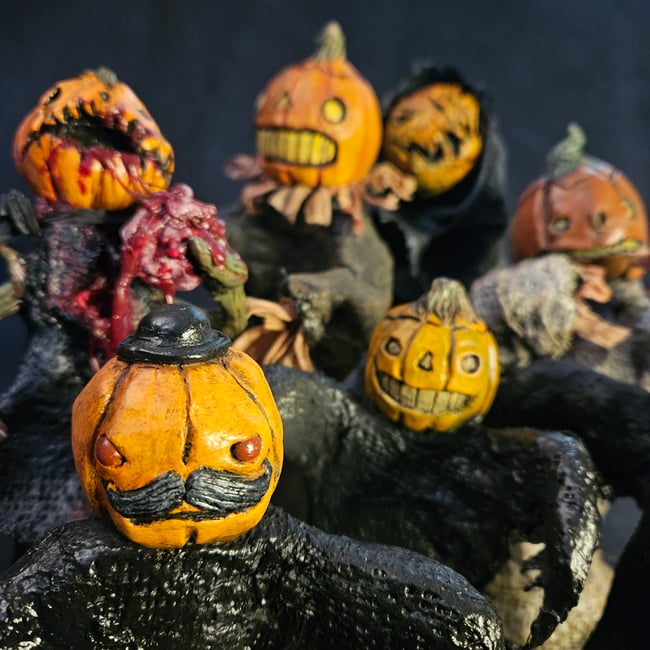 Don't tell Norb, but his arch nemesis Nurb has rounded up a gang of nefarious gourd cronies to enact his evil directives. Some people say Nurb is just Norb with a mustache, but I assure you that is not the case. Why would Norb want to play both sides? No, no it just doesn't make sense. One thing is for sure. Nurb is DEFINITELY a bad guy, and now he has a bunch of assholes to boss around. And so can you. Click and get yourself some pumpkin thugs.